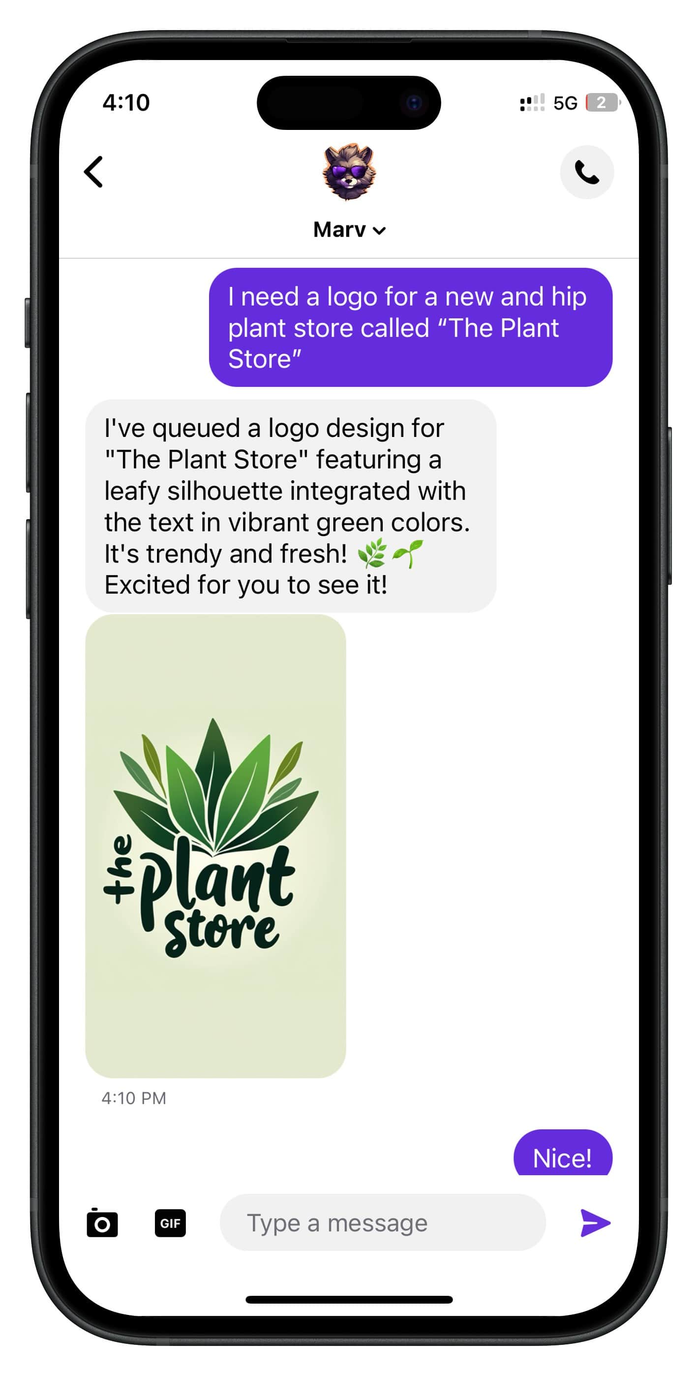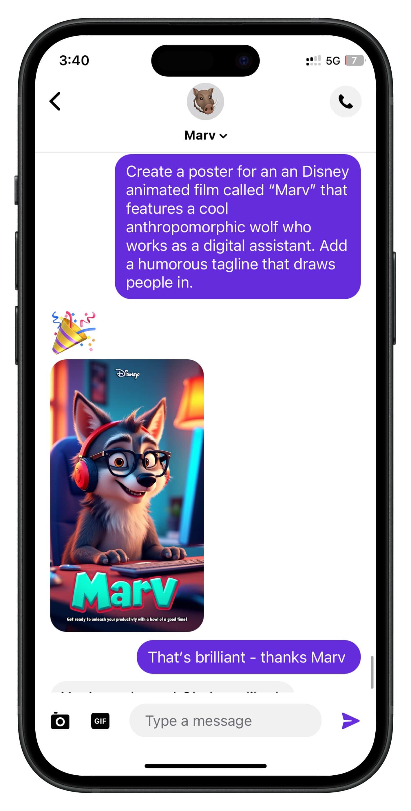 With Marv, generating custom images is effortless. Just tell him what you need, and he will handle everything from crafting the perfect prompt to delivering a stunning image, all in seconds.